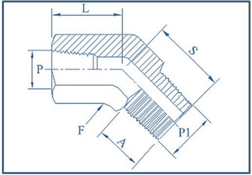 TYA is the manufacturer of High Pressure45 Deg Elbow,10000 psi , 700 Bars. It has NPT Male Connection on one  side and NPT Female Connection on the other side with shape of elbow (L shape)