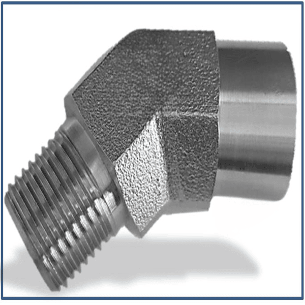 Standard Material for 45 deg Elbow,10000 psi is SS 316 but is also available in Carbon Steel, Brass, Hastelloy , Inconel alloys , Monel alloys , Titanium , Super Duplex & Duplex.