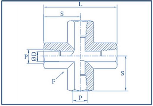 Standard Material for Female Cross,10000 psi is SS 316 but is also available in Carbon Steel, Brass, Hastelloy , Inconel alloys , Monel alloys , Titanium , Super Duplex & Duplex .